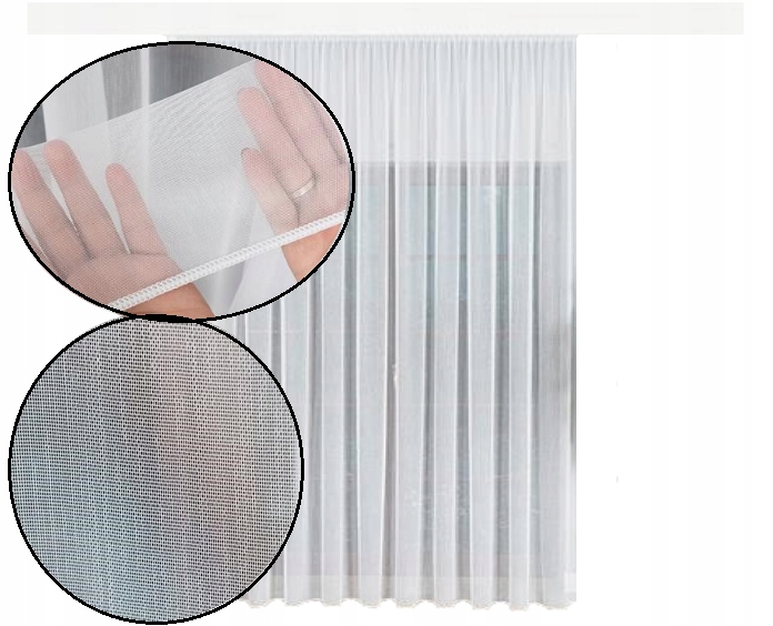 Firana wykonana z białej drobnej siateczki typu markizeta w kolorze białym.