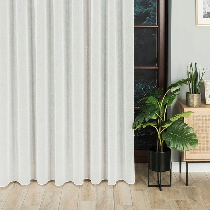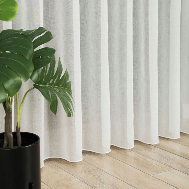 Biała gładka firana w odcieniu offwhite wykonana z etaminy.