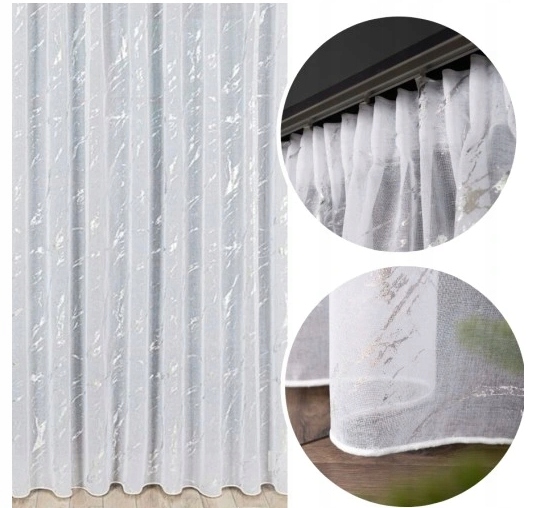 - Wyjątkowy Wzór: Dekoracyjny srebrny wzór marmuru nadaje tej firanie niezwykłego charakteru. To efektowna dekoracja, która przyciąga uwagę i dodaje blasku każdemu wnętrzu.