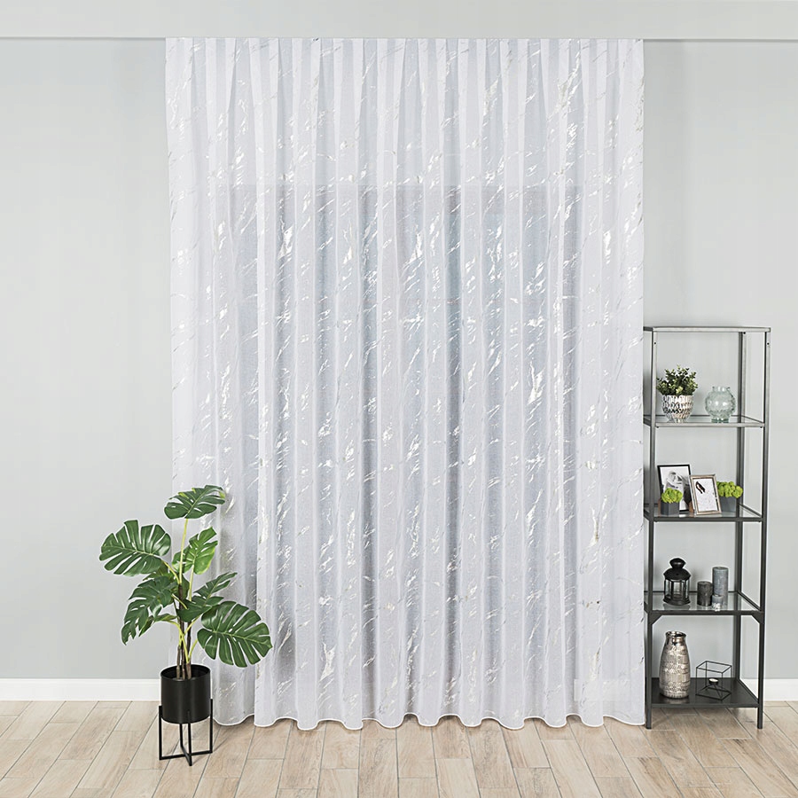 - Wyjątkowy Wzór: Dekoracyjny srebrny wzór marmuru nadaje tej firanie niezwykłego charakteru. To efektowna dekoracja, która przyciąga uwagę i dodaje blasku każdemu wnętrzu.