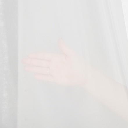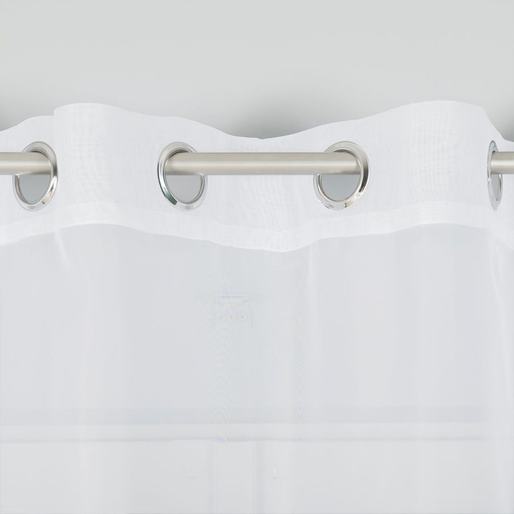 Lekki, zwiewny woal subtelnie filtruje światło dzienne, tworząc efekt przytulnej przestrzeni bez całkowitego odcięcia światła. Firana jest gotowa do zawieszenia – nie wymaga dodatkowego szycia ani przeróbek. Metalowe przelotki umożliwiają szybki i wygodny montaż na karniszu rurkowym