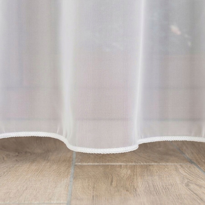 Firana jest obszyta po bokach i na dole,na górze posiada wszytą taśmę marszczącą.