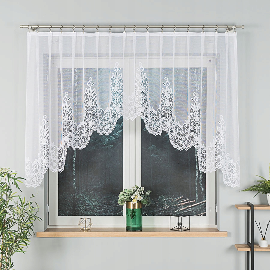 Klasyczny wzór firany pasuje do każdego pomieszczenia kuchni, sypialni, salonu czy jadalni.