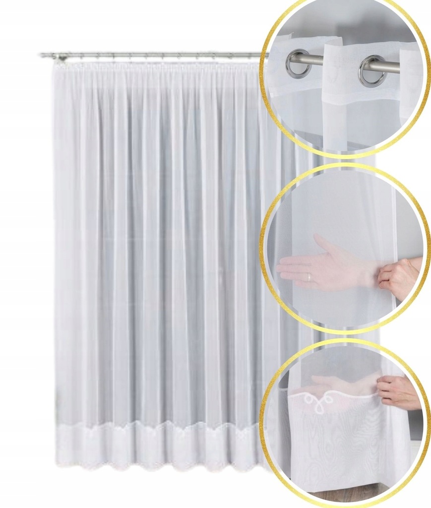 - Rodzaj: Firanka woalowa z haftowanym wzorem u dołu