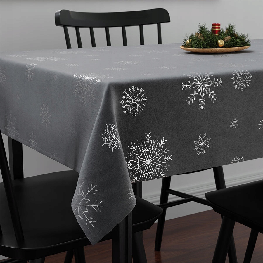Obrus jest w kolorze szarym, który idealnie oddaje magię świąt. To elegancki odcień, który przyciąga uwagę i nadaje wnętrzu wyjątkowego charakteru. Dodatkowo, wzór w postaci gwiazdek wprowadza do pomieszczenia świąteczny blask i tworzy wyjątkową atmosferę.