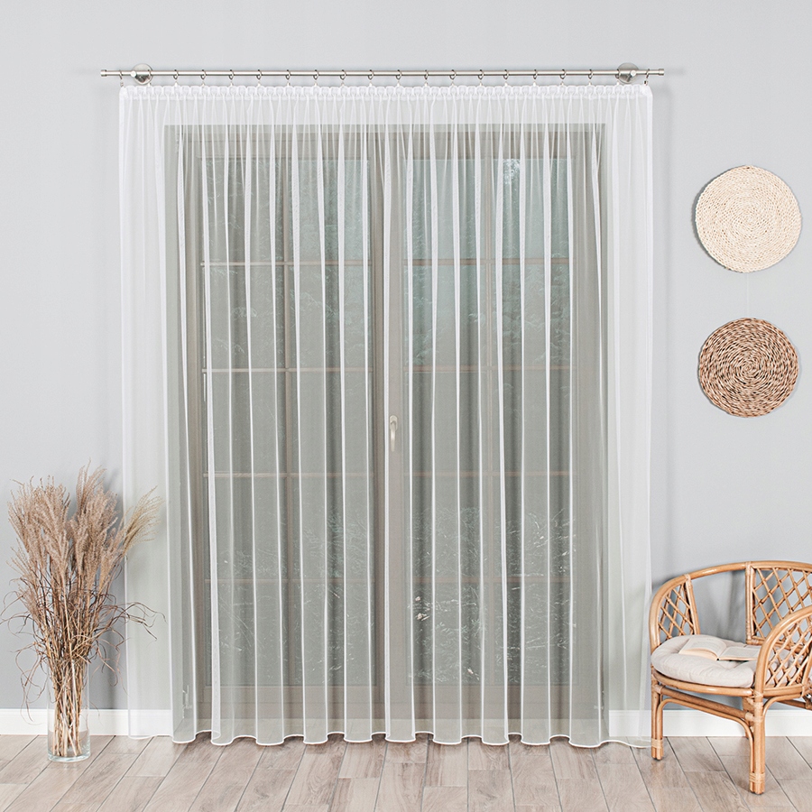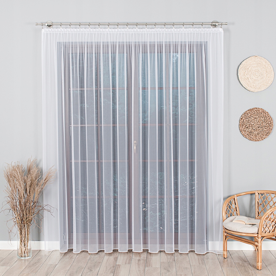 Poziom marszczenia 1:2 - jeśli przykładowo masz karnisz 200cm odpowiednim rozmiarem będzie firanka na 400 cm