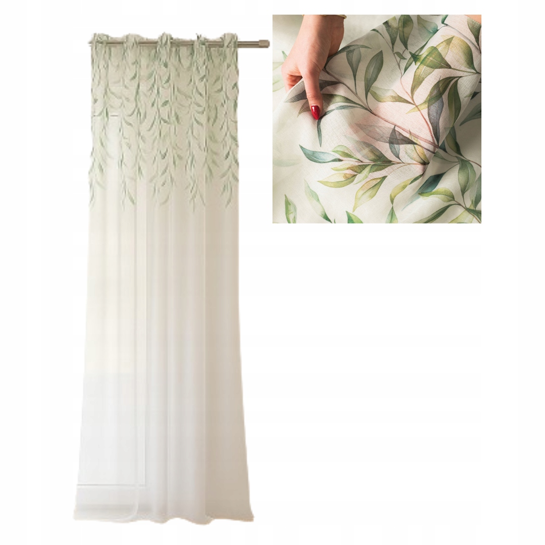Gotowa firana z etaminy z nadrukiem zielonych liści – styl, który ożywia każde wnętrze