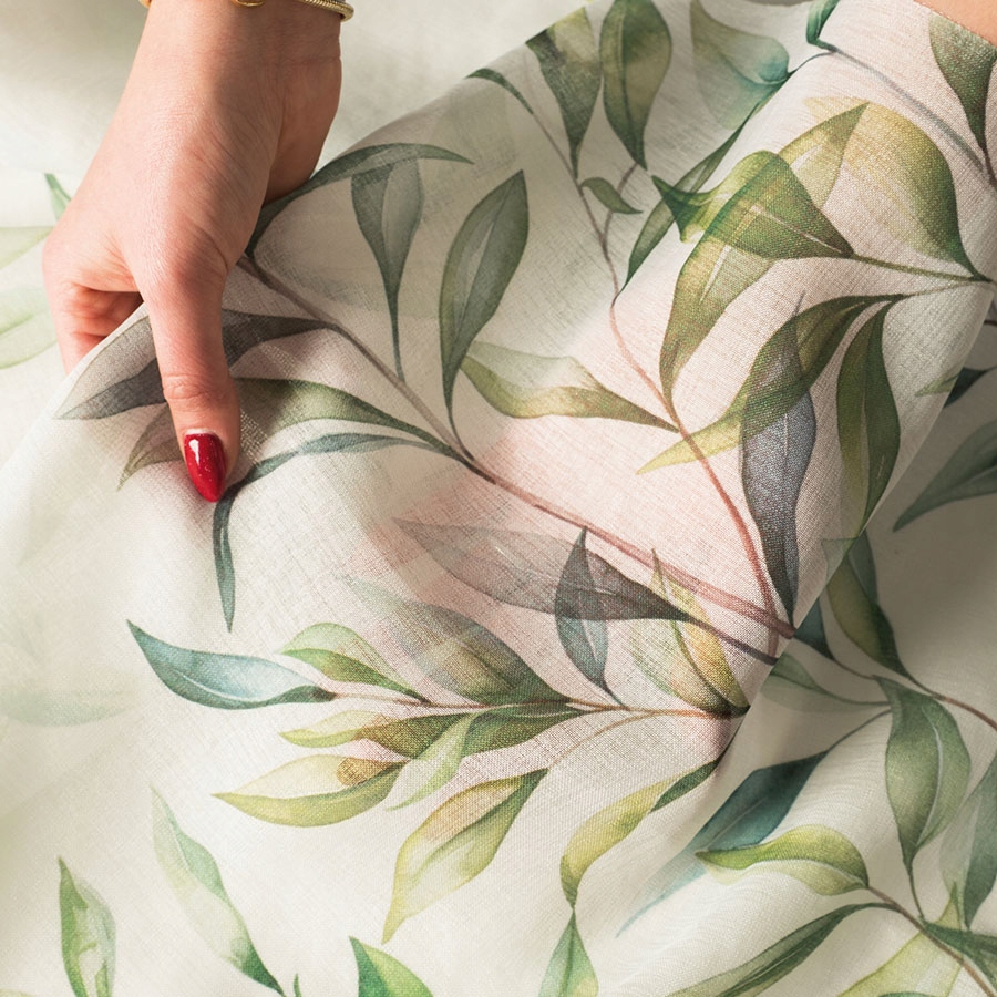 Gotowa firana z etaminy z nadrukiem zielonych liści – styl, który ożywia każde wnętrze