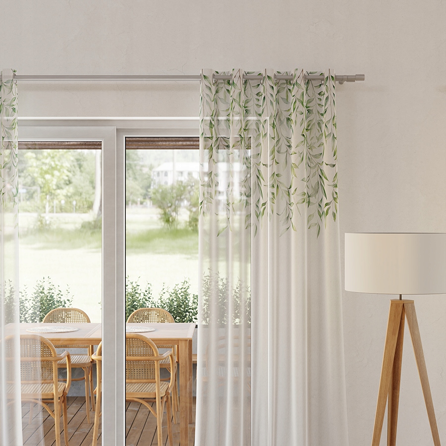 Gotowa firana z etaminy z nadrukiem zielonych liści – styl, który ożywia każde wnętrze