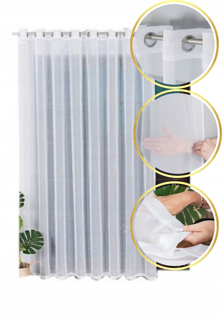 FIRANA GOTOWA NA PRZELOTKACH Z WOALU BIAŁA 175X300 FIRANKA NA KÓŁKACH