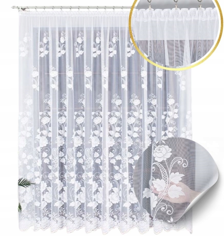 Kwiaty Firanka żakardowa 023006 z taśmą biała