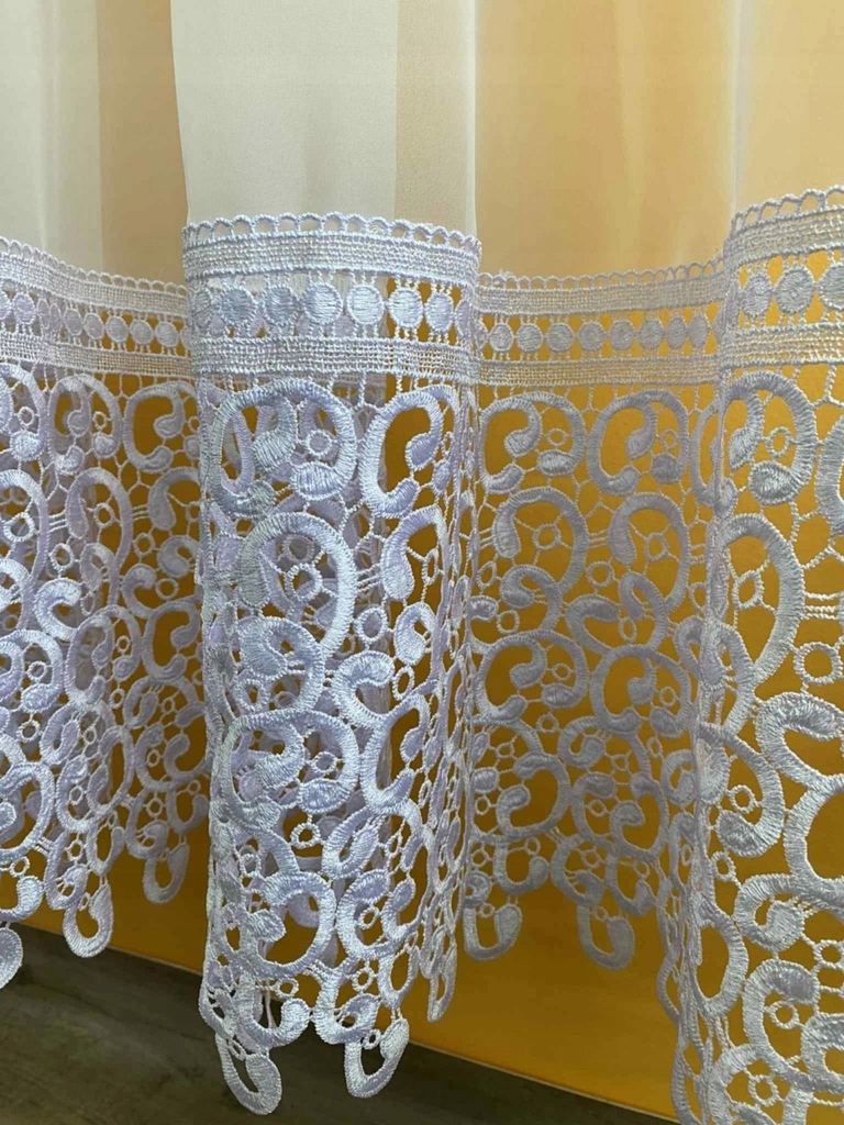 Gotowa firana z woalu z gipiurowym wykończeniem – klasyczna elegancja i lekkość