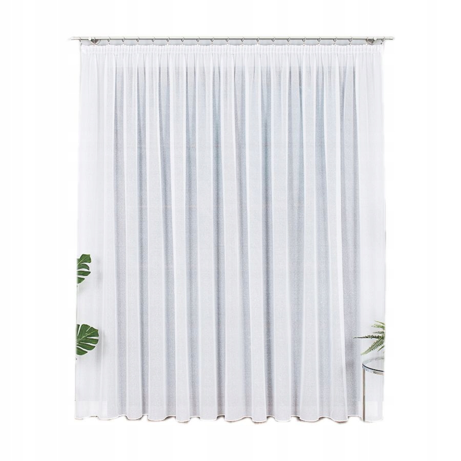 Krótka firana z woalu sable biała WYS. 190 x 200 TAŚMA marszcząca