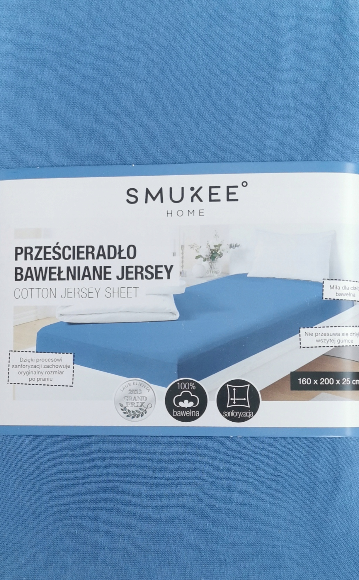 Prześcieradło Jersey z gumką na całym obwodzie 100% baw Smukee 160x200x25cm