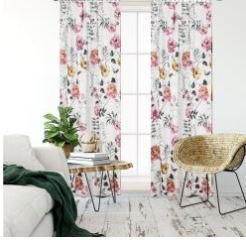 Zasłona gotowa 250x145cm biała w kwiaty zasłony salon na taśmie
