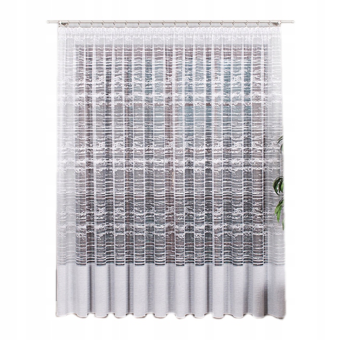 - Biała z szarym gotowa firanka żakardowa
