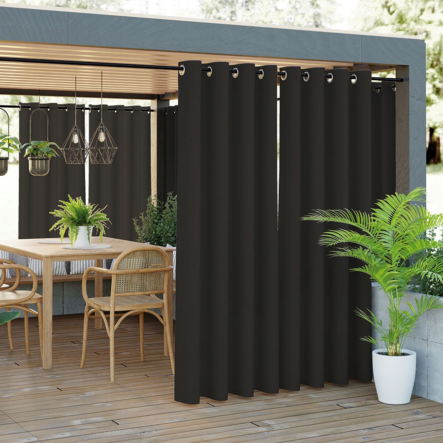 Wodoodporne wykończenie chroni przed deszczem oraz wilgocią. Przeznaczona jest do użytkowania na tarasie, pergoli, balkonie czy altanie. Zasłona posiada 8 metalowych przelotek wykonanych ze stali nierdzewnej.